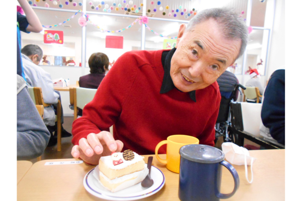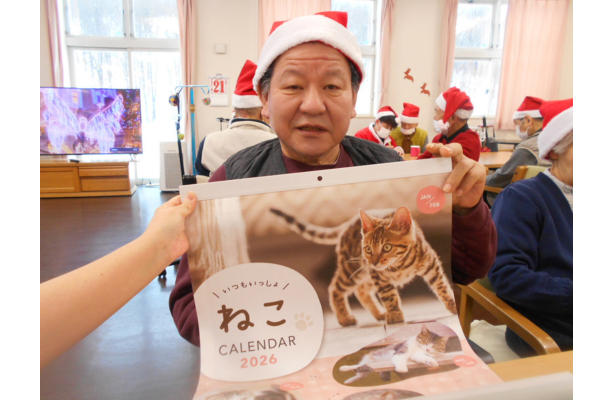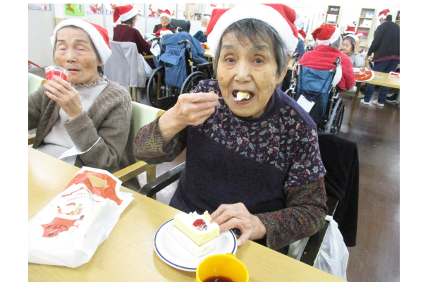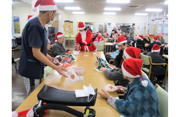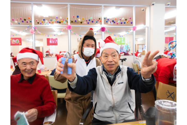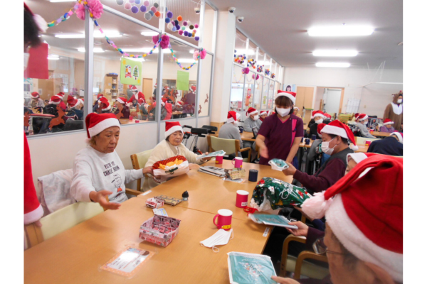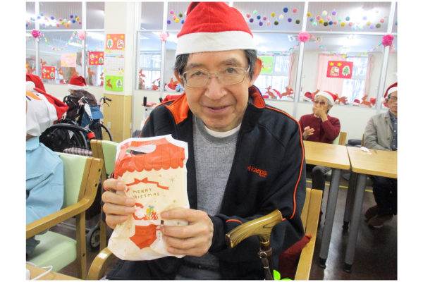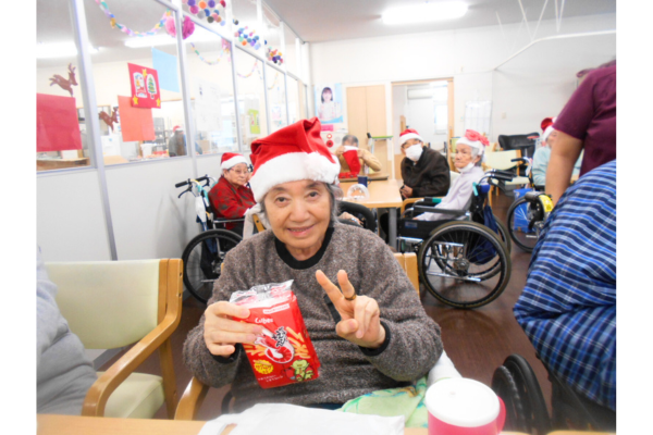 デイサービスでは皆様にサンタさん帽子をかぶってもらい雰囲気を楽しんでいただきます。